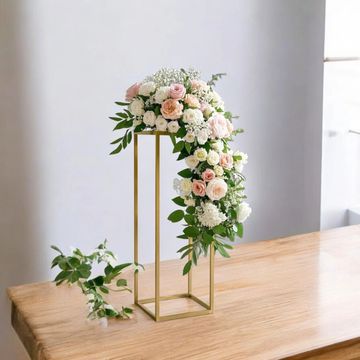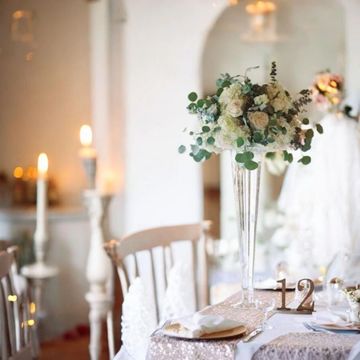 These lovely pedestal stands are a great centrepiece option. The top of the stand is flat like a tabletop so easy for you to install flowers. These are a great centrepiece to avoid blocking view across the table.