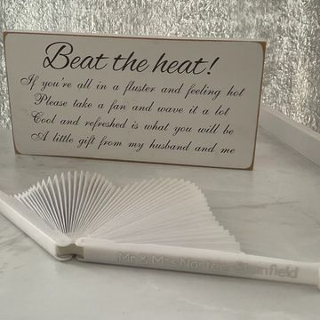 Beat the heat fans are perfect for any summer wedding. Keep you guests cool with these personalised custom fans. price is based on each fan.