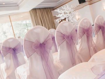 White Chair cover and Organza Sash £2.80 each.