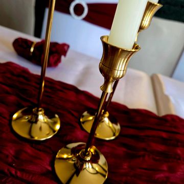 We supply the candlesticks with either ivory or white candles included in price. We can offer LED and coloured candles at an additional charge.