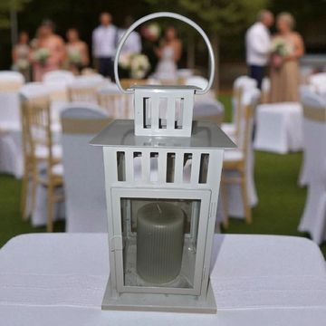 This beautiful statement lantern comes with a LED candle inside to create an atmospheric light for you ceremony or reception.