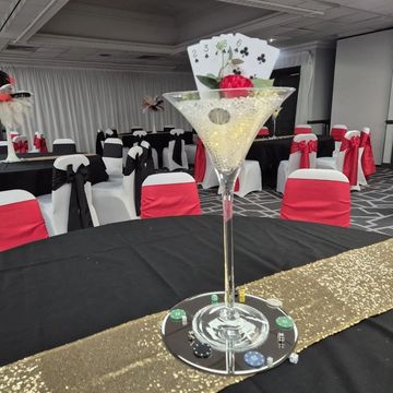 Our Large Martini Glass Vases are available for hire and are a uniquely stylish addition for any wedding or event. Additional flowers, feathers or decoration is charged at additional cost.