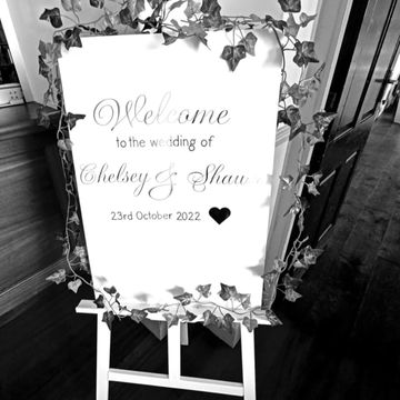 A beautiful rustic freestanding chalkboard easel that can be used for your event. It can be used for directing your guests, a table plan or even for a message or phrase.